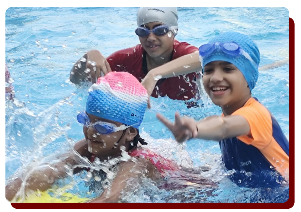 Swimming: A modern swimming pool where students learn aquatic skills, endurance, and water safety.